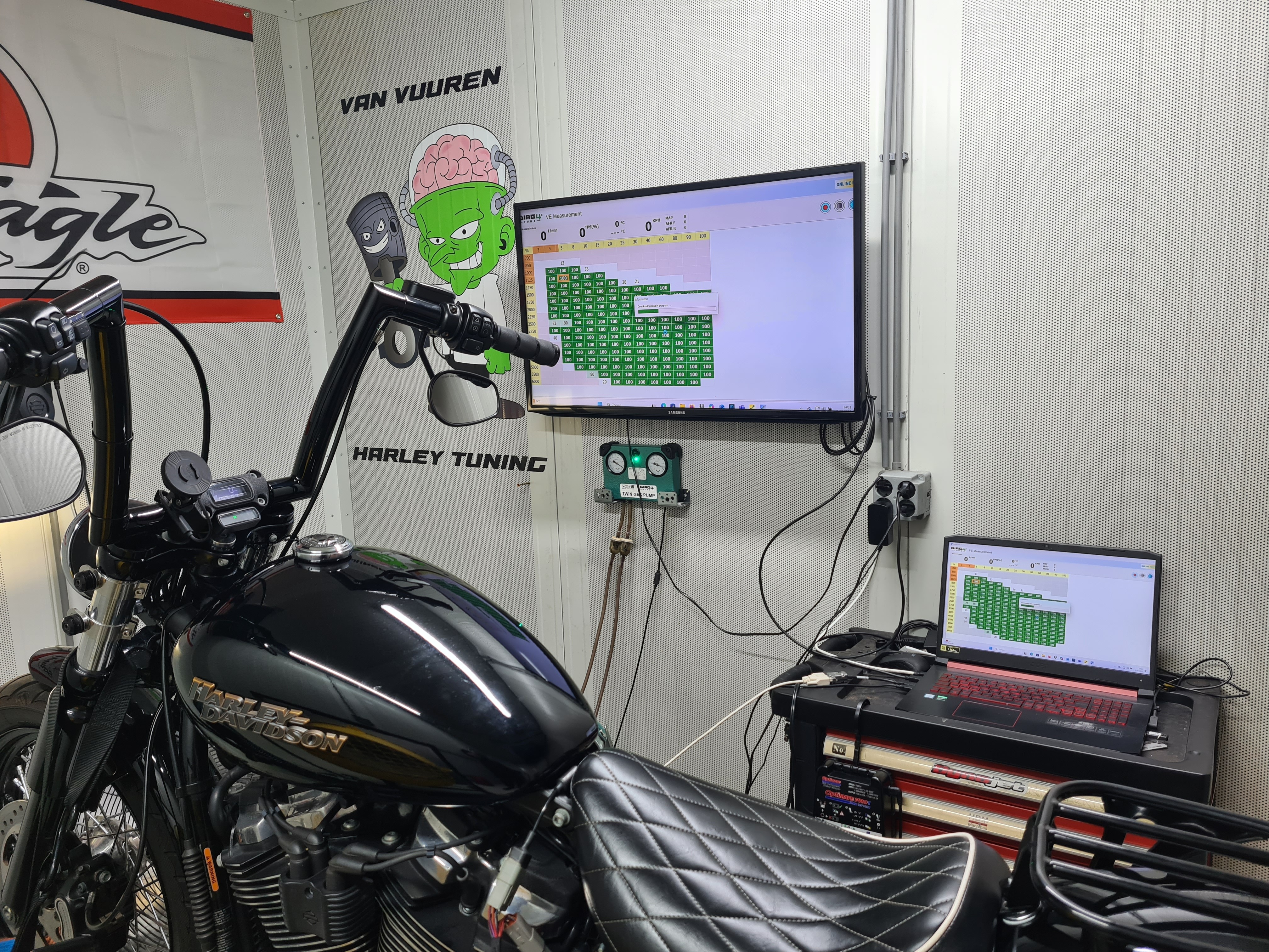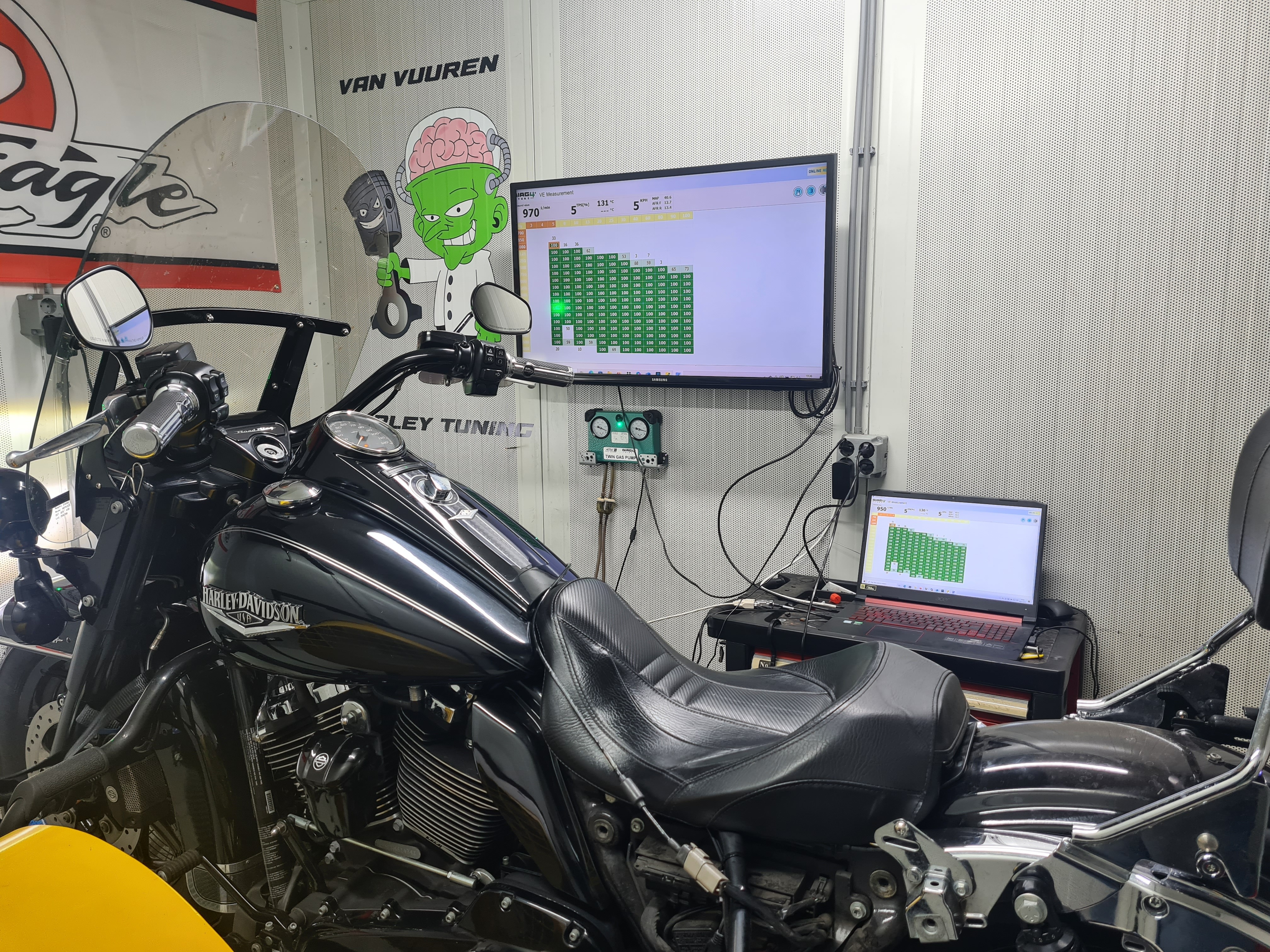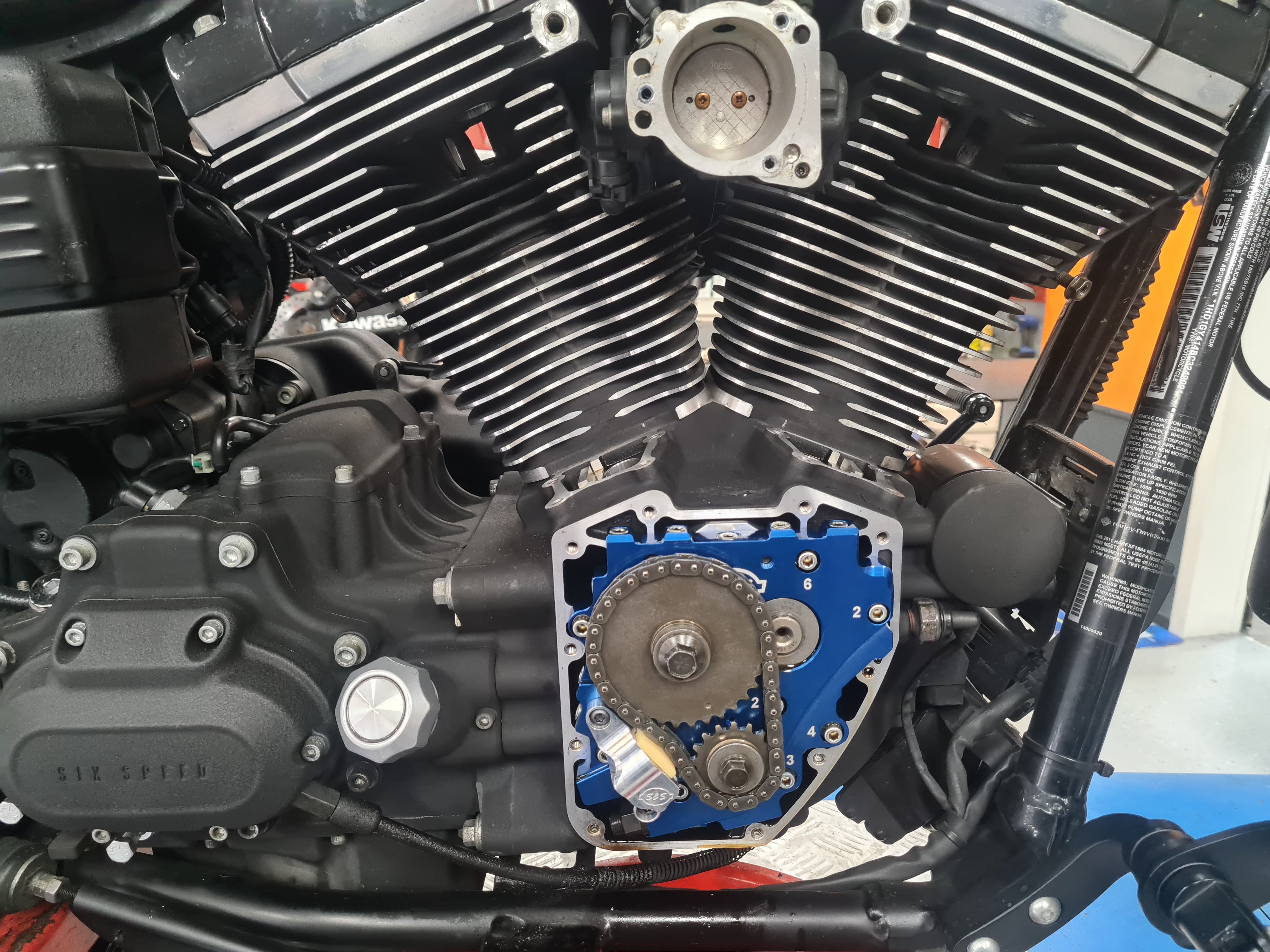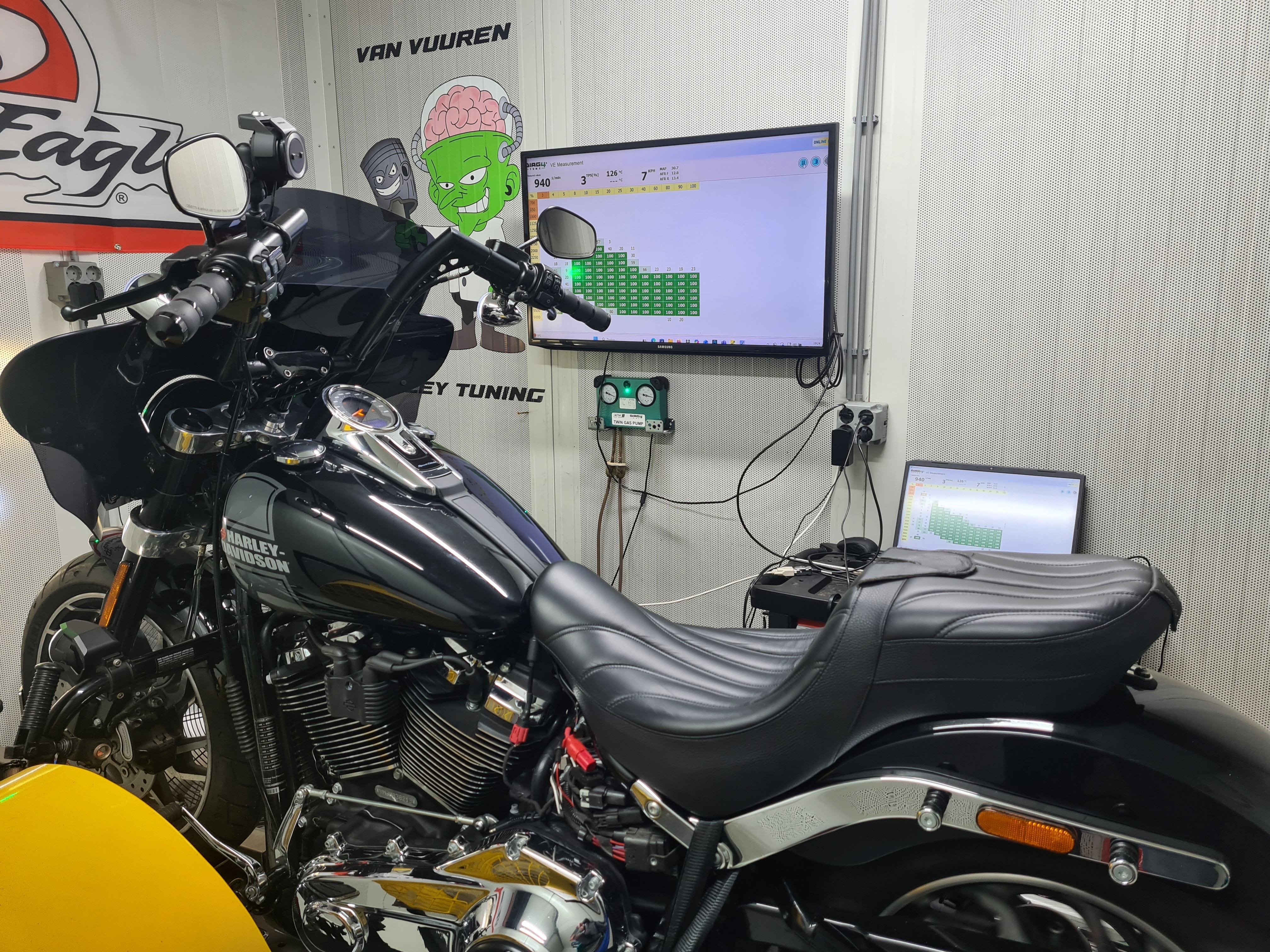 Deze motor hebben we voorzien van de volgende onderdelen S&S 129 inch Big Bore kit, Feuling camplate oliepomp en lifters, S&S stelbare stoterstangen, Screamin Eagle CNC koppen met S&S top end guardian kit en kop bouten, S&S 540 Torque cam, 64 MM gasklephuis, 6,3 gram injectoren en S&S Tappet cufs. Dit alls is uitgemond in een super dikke toer motor met een berg koppel over heel het toeren gebied. En evengoed nog een flink aantal PK's